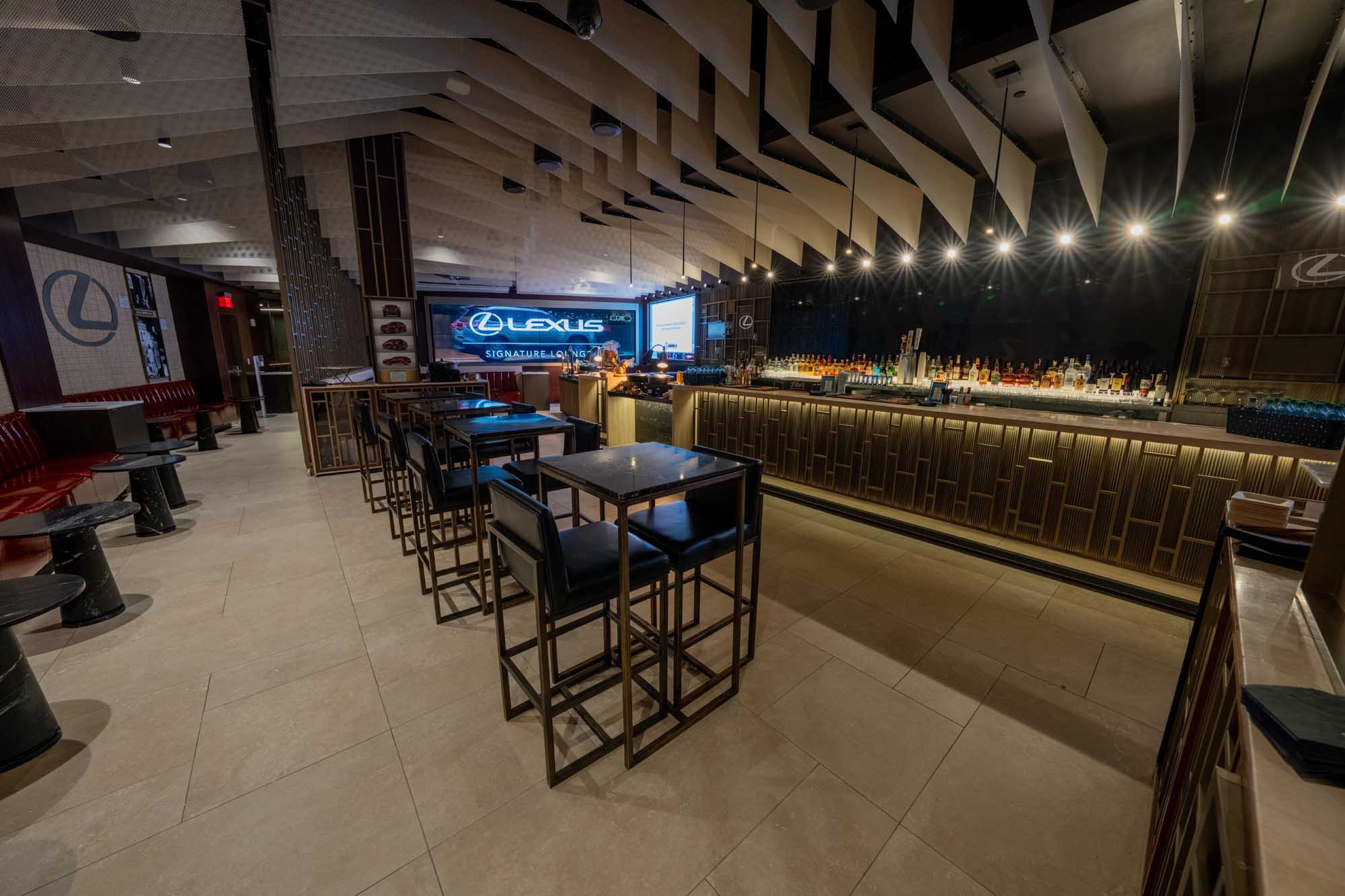 Located on the Event Level, the 1,852-square-foot Lexus Lounge is an upscale event space, designed with refined lounge seating, communal high-top tables with bar stools, integrated buffet stations, and a full-service bar—perfect for networking, client entertainment, and social gatherings.